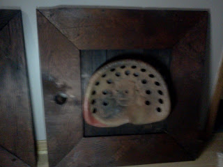 I used some of the rustic hardware I bought when I went picking not to long ago. Hors shoes, square nails, hooks, small fire place cover, etc... It is fun to make and accents a room well without going "all log" or "all rustic".
